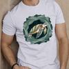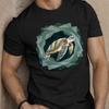 Geometric Sea Turtle Graphic Tee Men Casual Summer Short Sleeve Breathable Cotton TShirt