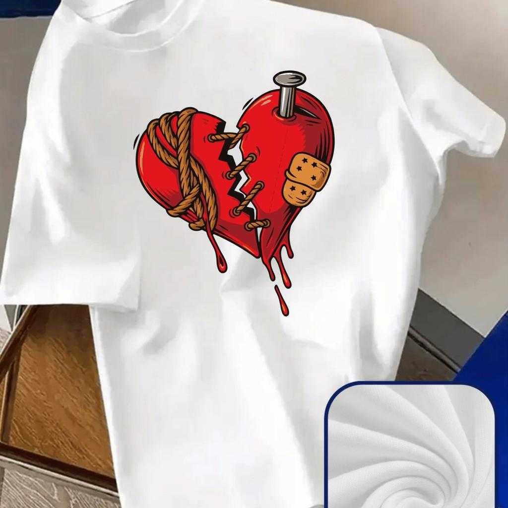 Broken Heart Graphic Tee Mens Soft Cotton Street Style Print Short Sleeve Casual TShirt