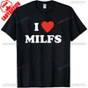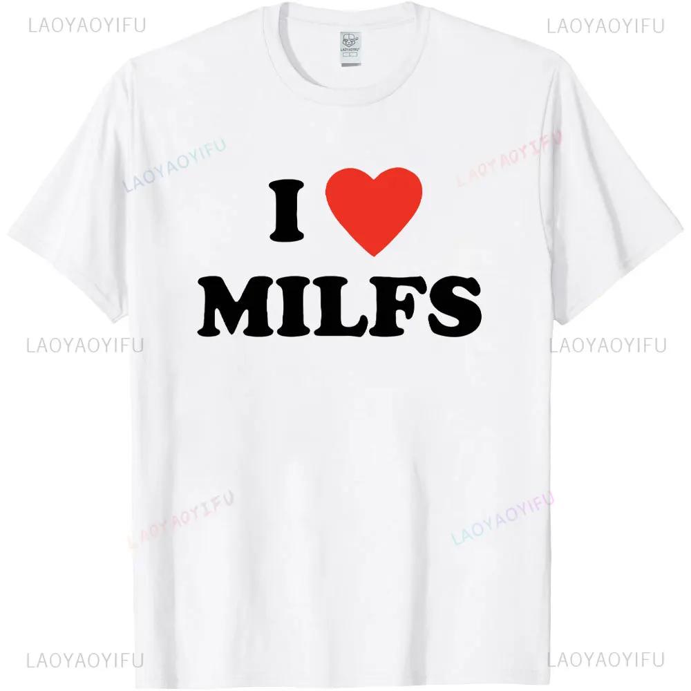 I Love MILFs Heart Graphic Printed Funny Male T Shirts Casual Streetwear Short Sleeve Korea Style Tshirt Soft Y2K Mens Clothing