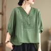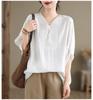 Damska koszulka bawełniano-lniana Damska letnia wysokiej jakości vintage luźna z rękawem 3/4 Nowa letnia odzież uniwersalny top