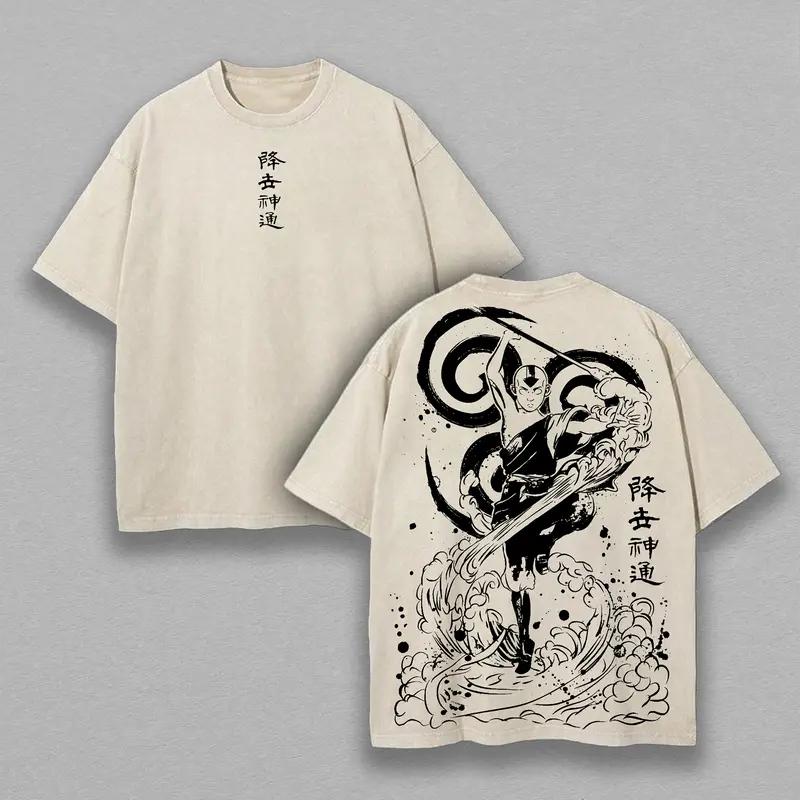 Aang Print T-shirt Avatar The Last Airbender Anime Clothing Men Women Casual Cotton Tshirts Vintage Washed Tee Harajuku T Shirt