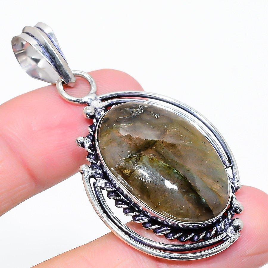 TItle:- Labradorite Gemstone 925 Silver Jewelry Pendant 2.29"