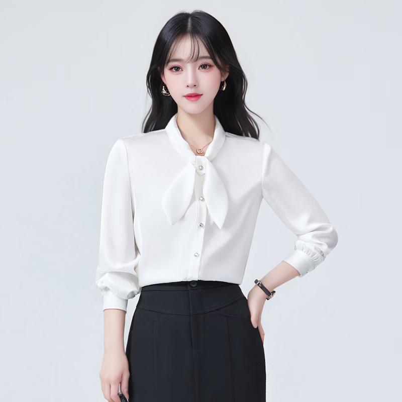 Women's Professional Chiffon Bow Tie Long Sleeve Blouse