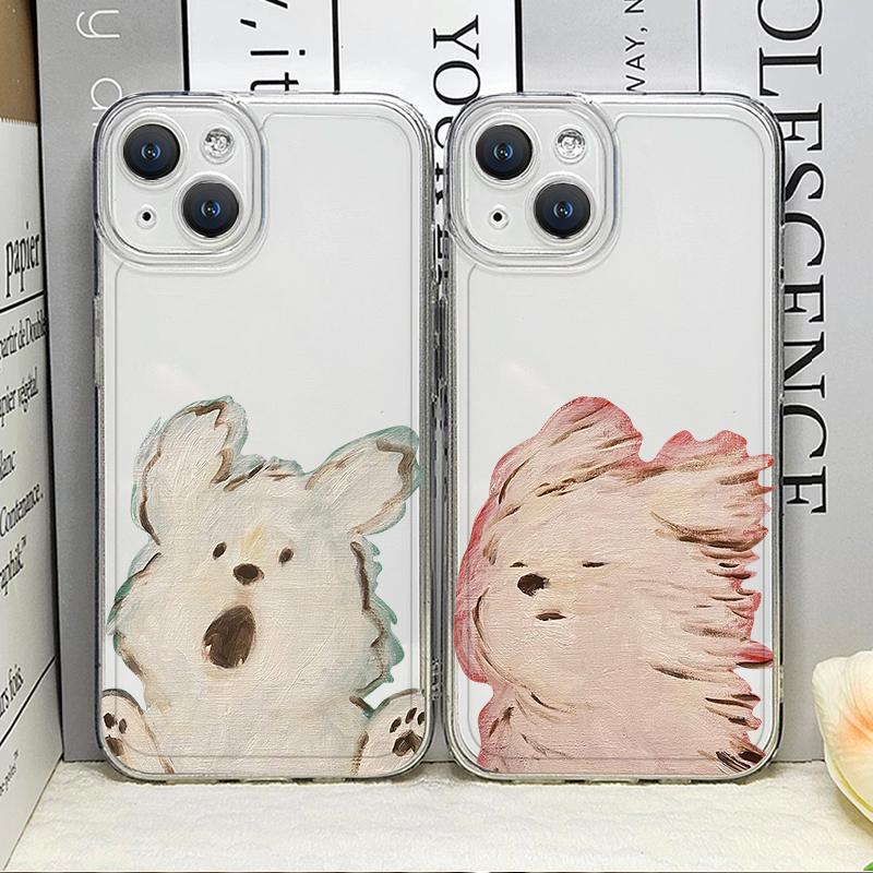 Funny Lovely Teddy Dog Dog Couple Clear Phone Case for IPhone 17 16 15 14 11 12 13 Pro Max 7 8Plus 12 13 Mini X XS XR Soft Cover