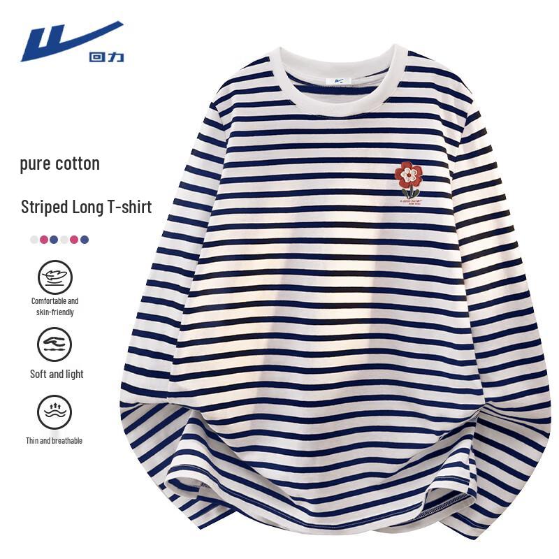 Huili Women's Nautical Striped Long-Sleeve T-Shirt
