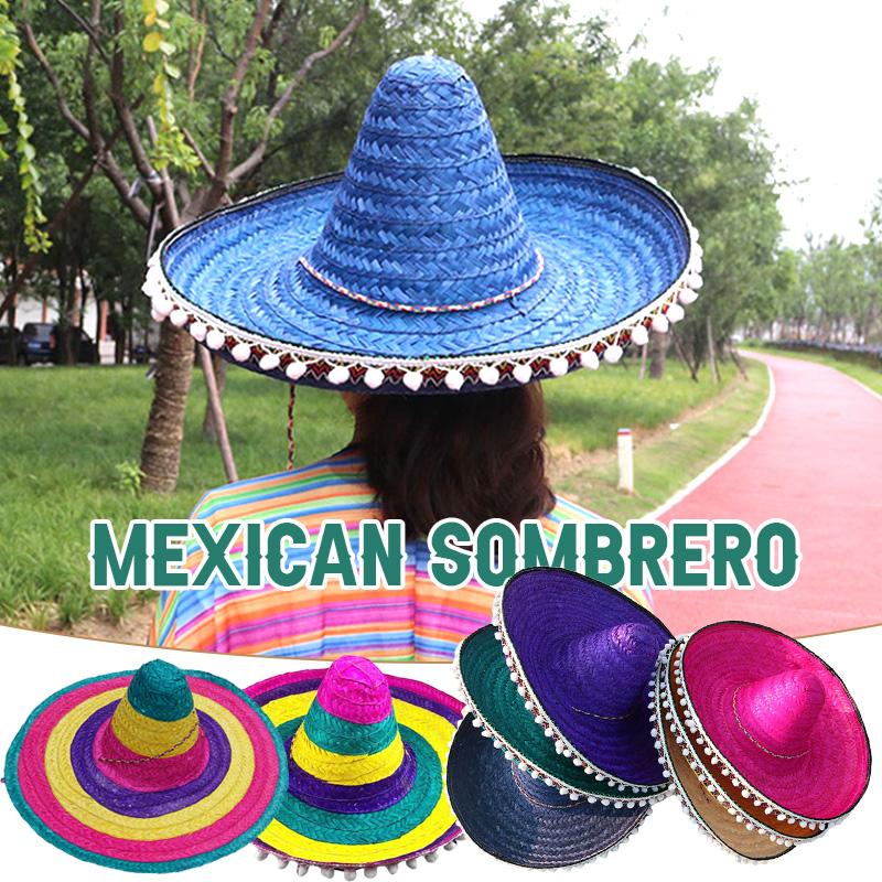 Mexican Party Hat Colorful Wide Brim Straw Hat Men Women Outdoor Carnival Halloween Decor Kids Cosplay Performance Hat Sombrero