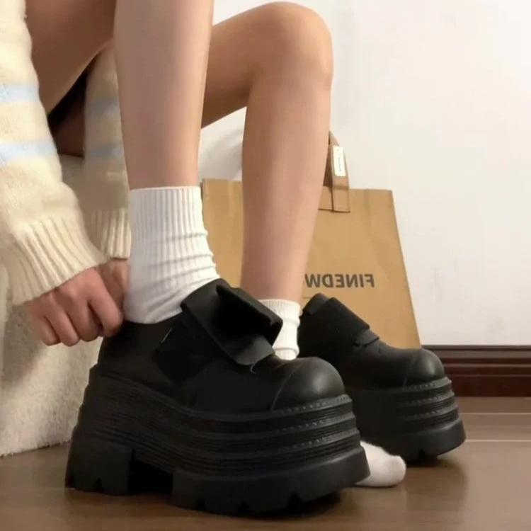 Damskie Buty na Platformie Styl Punkowy Buty Gotyckie Okrągły Nosek Gruba Podeszwa Jednolite Buty Modne Skórzane Codzienne Obuwie Zapatos De Mujer