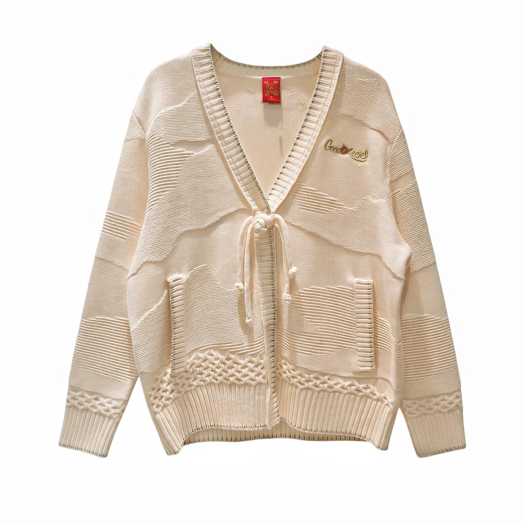 Anta Retro Twisted New Chinese Style Cardigan Long Sleeve Knitwear Women tops Corn-White 162618708-1
