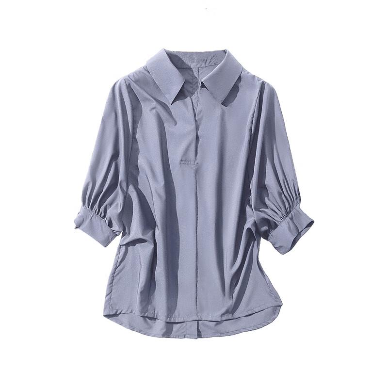 Women's Loose Fit Polo Blouse with Lantern Sleeves