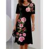 Floral pattern 3D printed women's street fashion short-sleeved round-neck mini dress