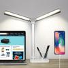 Eye-Care LED Desk Lamp with Dual Swing Arms, USB Charging Port, Touch Control, Foldable Design for Home Office, Study, Dorm Use
