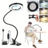 LED Magnifying Lamp with Clip, 10x Magnification, 3 Color Modes, Adjustable Brightness, Flexible for Reading, Painting, Crafting