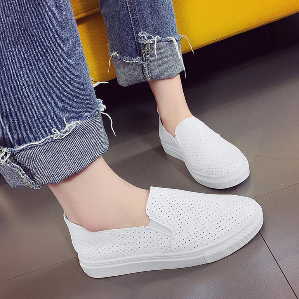 Leisure Women's Four Seasons Artificial Leather Solid Color Non Slip Flat Round Toe Breathable Slip On Lazy Casual Women Sandals