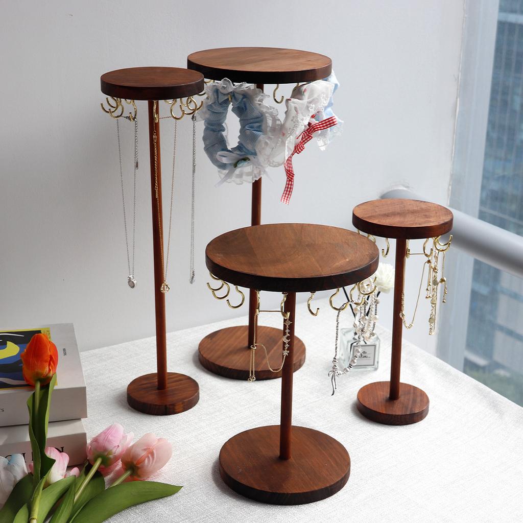 Walnut Color Wood Jewelry Organizer Display Holder Necklace Earrings Bracelets Display Stand Desktop Jewelry Storage Rack