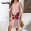 Summer Sweet Butterfly Sunflower Dress Loose Print Women Dress Short Sleeve Casual O-Neck Ladies Clothes