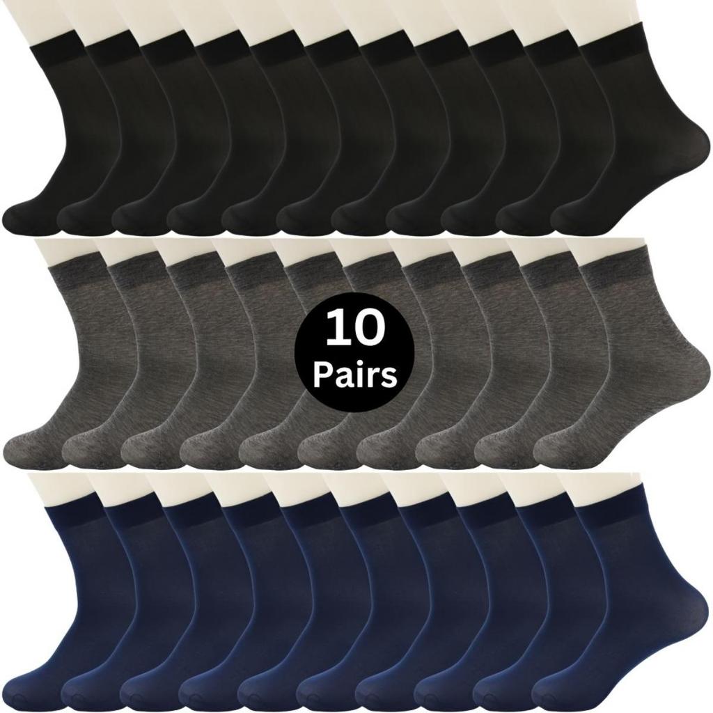 10 Par Męskich Skarpet Średniej Długości - Lekkie, Oddychające Cienkie Jedwabne Skarpety, Seria Jednokolorowa do Codziennego i Biznesowego Użytku