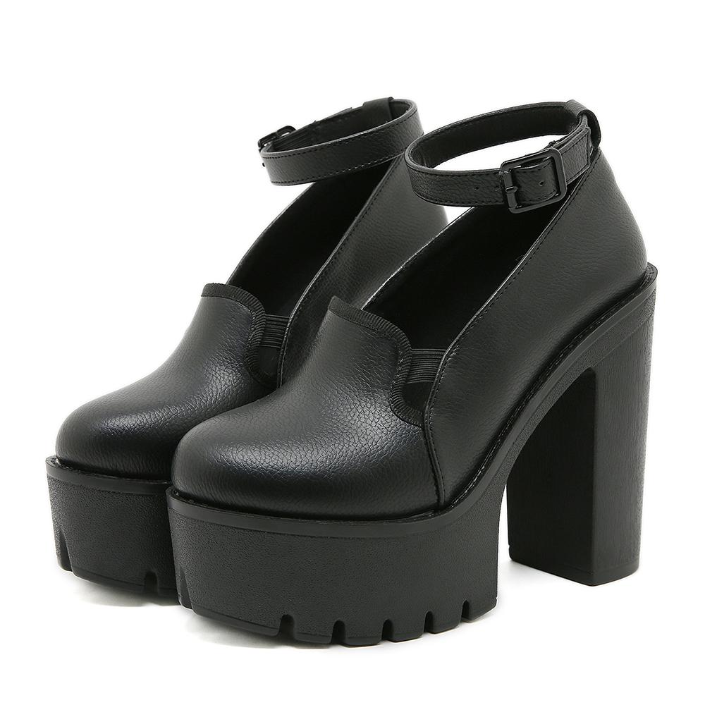 Gdgydh Czarne Mary Jane na platformie dla kobiet z klamrą Buty na wysokim obcasie Wygodne buty klubowe Obcasy blokowe Pasek na kostce