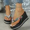 Colorful Gem High Wedges Flip Flops Women Summer Chunky Platform Crystal Clip Toe Sandals Woman Thick Bottom Beach Slippers