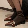 Elegant Pointed Toe Women Ankle Boots Suede Mid Heels Fad Heeled Shoes New Pumps Winter Casual Woman Short Chelsea Botas