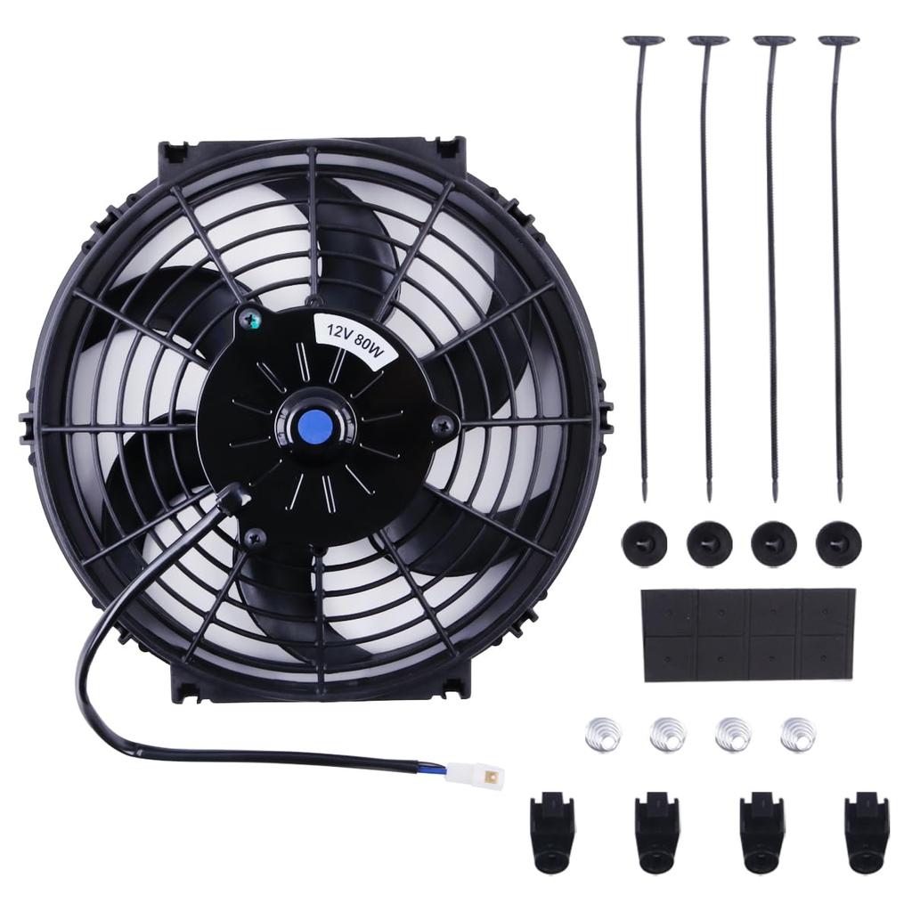 ZAP Performance 10-inch Engine Cooling Fan, Electric Radiator, Universal Slim Push-Pull Cooling Fan, Engine Kit, 12V, 80W Power, Universal, Black, wit