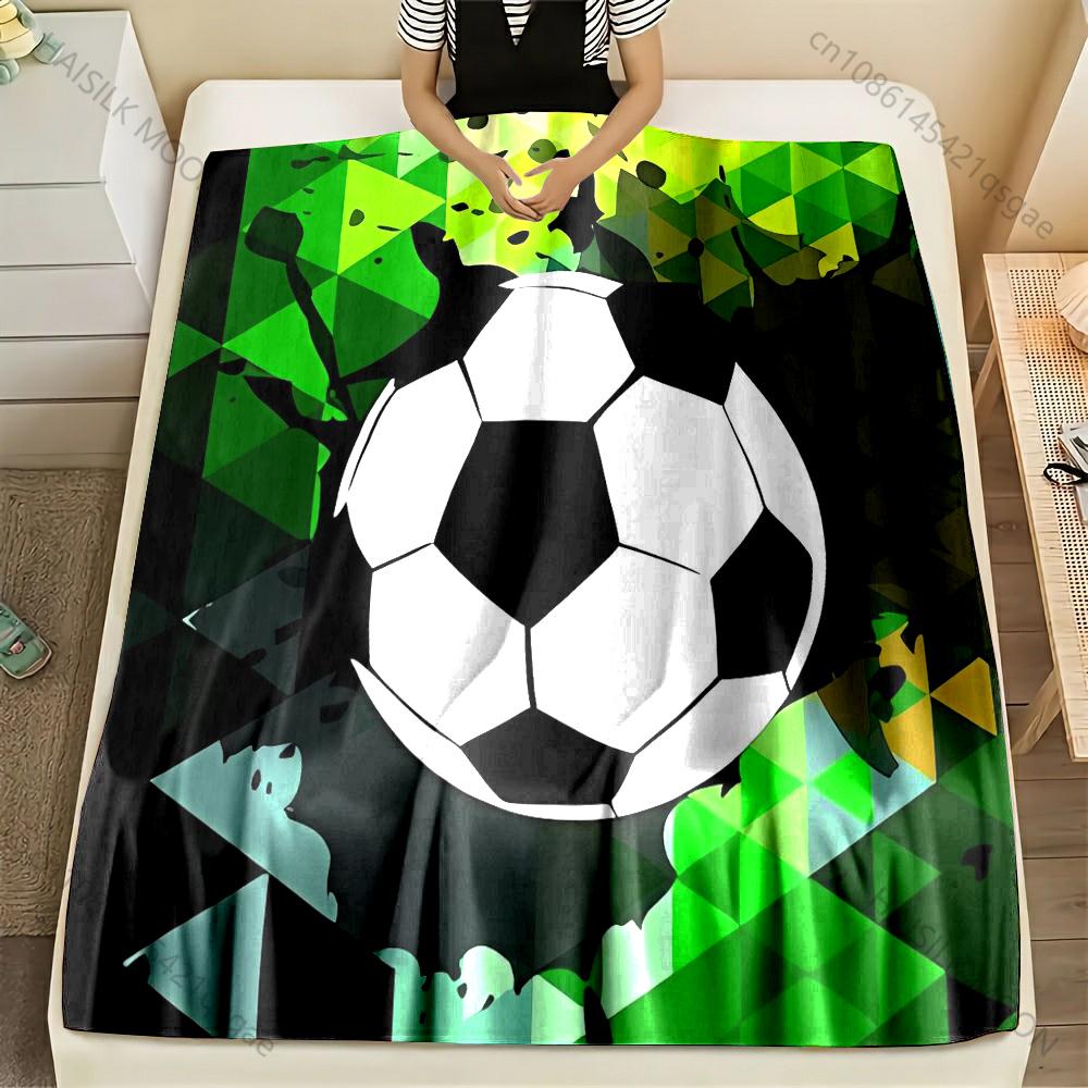 Multi-size Soccer Ball and 3D Grid Pattern Blanket Flannel Material Soft Warm for All Seasons, Home Outdoor Camping Picnics RV