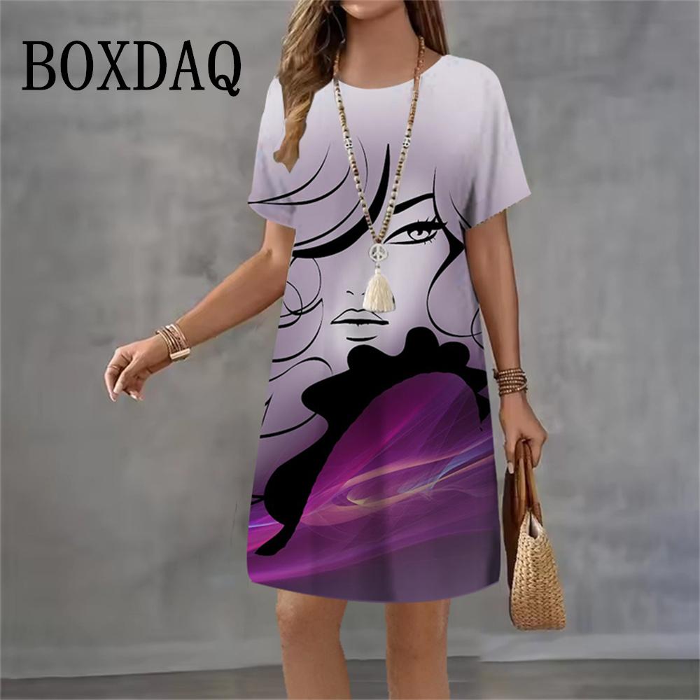 Abstract Painting Face Dresses Women 2026 New Fashion Streetwear Gradient 3D Print Short Sleeve Dress Summer Casual Loose Dress