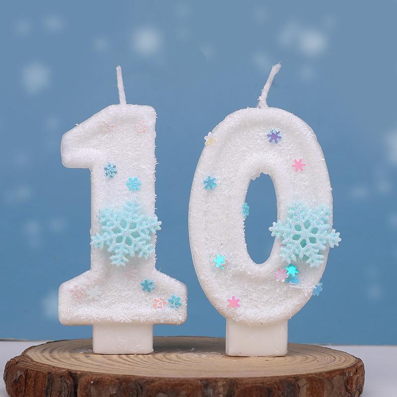 Glitter Snowflake White Number Cake Candles Kids Girl Frozen Birthday Party 0-9 Number Cake Topper Decoration Supplies Christmas