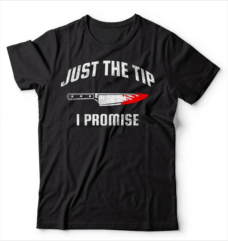 Just The Tip I Promise Knife Scary Shirt Horror Movie Tee Shirt Halloween Scary Costume Michael Myers Shirts Scary Costumes
