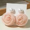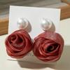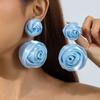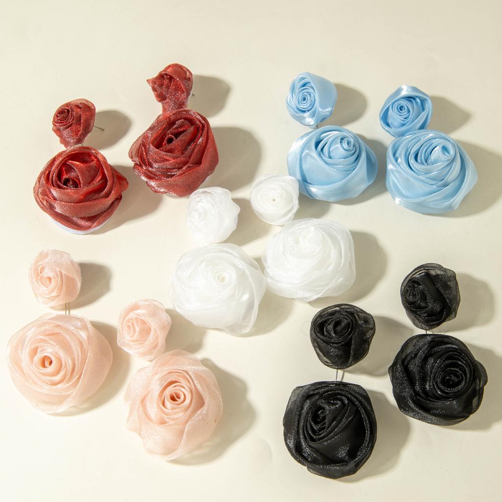 Akcesoria, koreańskie słodkie i świeże tkaniny, kolorowe trójwymiarowe kolczyki z kwiatem pąka róży, kolczyki.