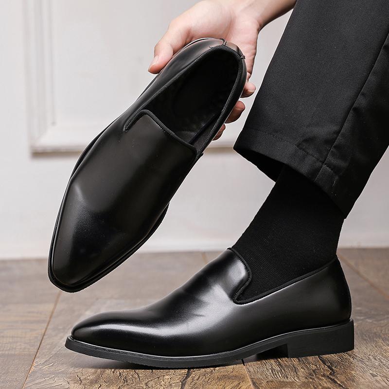New Men's Pointed Patent Leather Dress Business Casual Shoes Male Black Brown Loafers Wedding Dress Homecoming Footwear