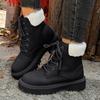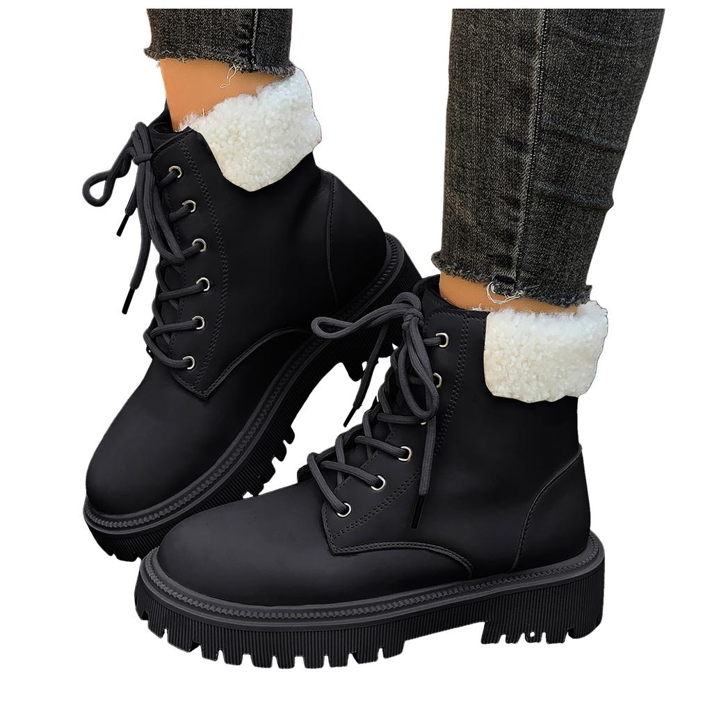 Fashion Women Ankle Boots Autumn Winter PU Leather Platform Shoes Female Anti-Slip Warm Fleece Lined Thicken Casual Snow Boots