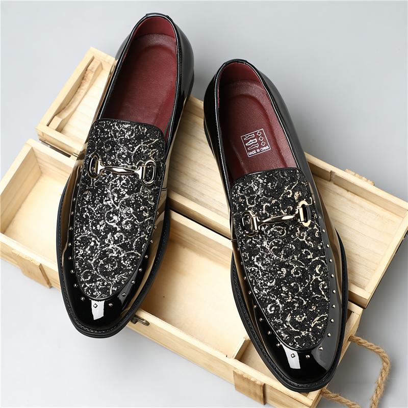 Designer Fashion New Charm Sequins Rivet Slip on Shoes for Men Designer Formal Wedding Prom Dress Homecoming Footwear