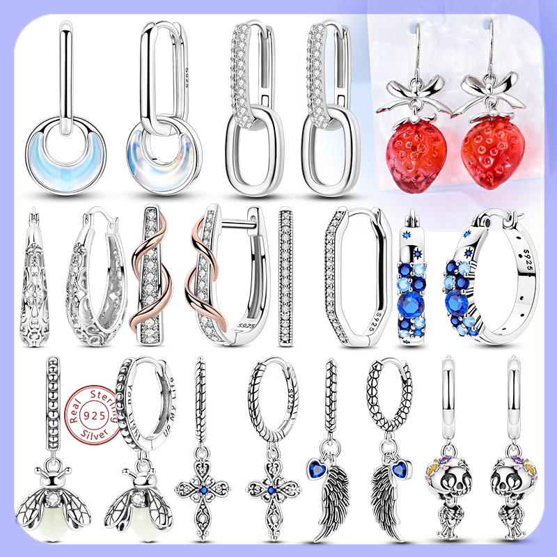 New 925 Silver Earrings Simple Bow Strawberry Butterfly Hoop Stud Earrings for Wedding Party Women Jewelry Girls