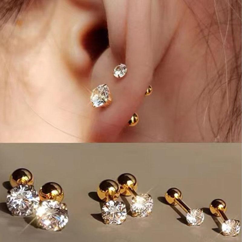 3 Pary Klasycznych Okrągłych Kolczyków Sztyftów z Cyrkoniami dla Kobiet, Stal Nierdzewna Damska Biżuteria do Piercingu Chrząstki, Tragus, Płatka Ucha, Daith