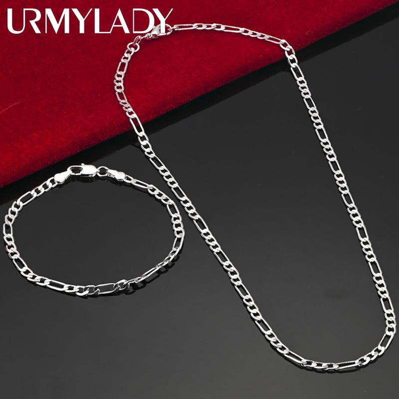 Noble new arrive 925 silver 4MM chain for men Women Bracelet Necklace jewelry set lady Christma gifts charms wedding