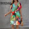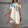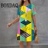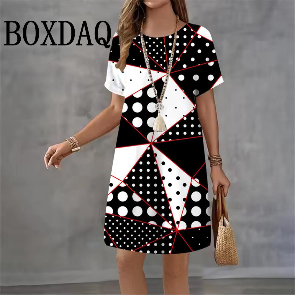 2026 Women Dresses Summer Dot 3D Printed Loose Clothing O-Neck Short Sleeved Clothing Fashionable Tie Dye Geometry Casual Dress