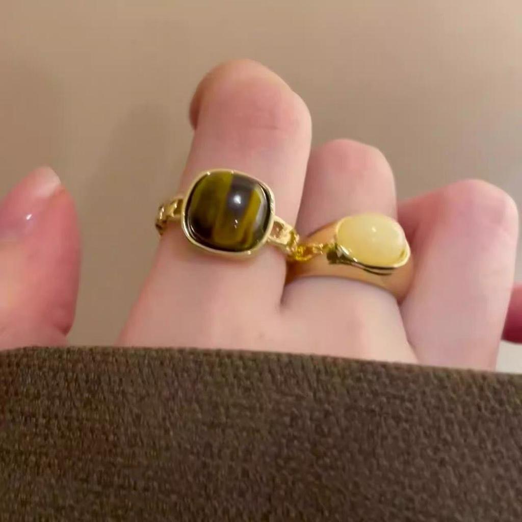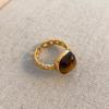 Vintage Brązowy Kamień Tygrysie Oko Otwarty Pierścionek dla Kobiet Nieregularny Okrągły Spersonalizowany Design Pierścionka na Palec Poczucie Stylu Biżuteria Prezent