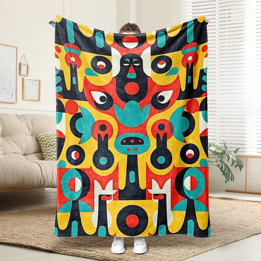 Modern abstract colorful patterns Flannel printed blanket suitable for all seasons suitable for living room office sofa travel