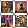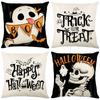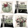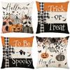 4 Pack Halloween Linen Throw Pillow Covers Cushion Case Vintage Square Pillowcase for Couch Sofa Bed Living Room Home Decor