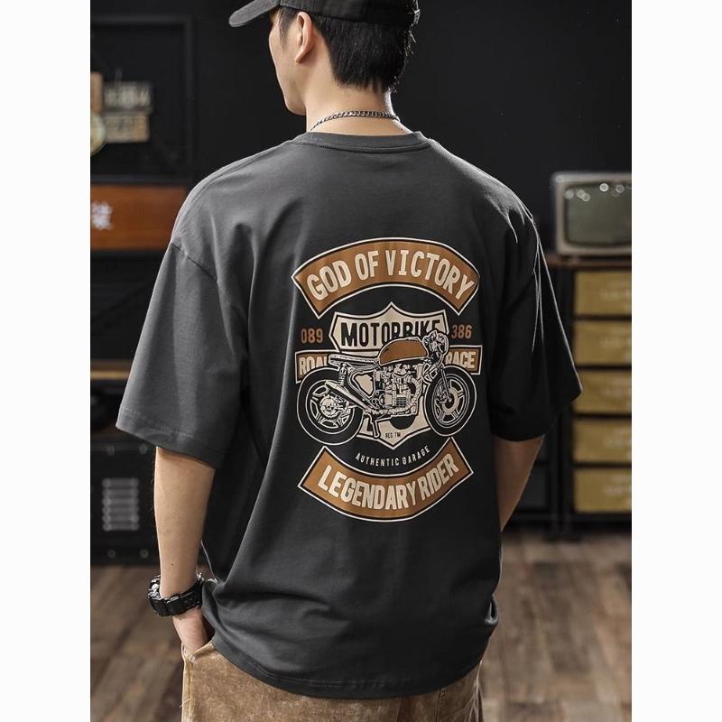2025 Summer New retro motorcycle print Tshirt cotton loose and fashionable shortsleeved streetwear for men and women