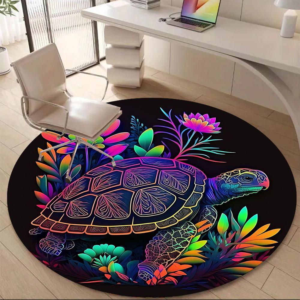 1pc Turtle Garden Office Round Area Rug, Indoor Mat Suitable ForOffice, Under Office Chairs Bedroom Living Room Home Decor, Room Deco D096