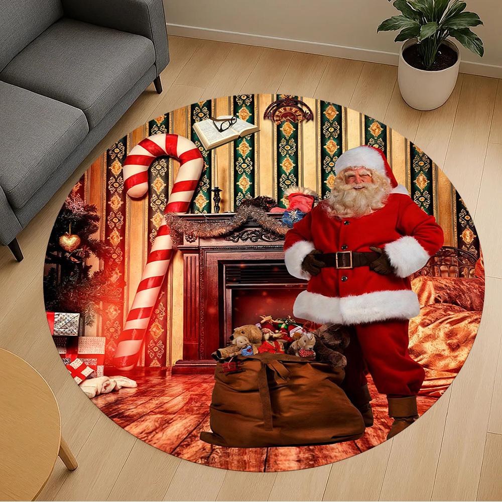1pc Santa Claus Christmas Round Chair mat office Area Rug - Non-Slip, Floor Mat for Office, Bedroom, and Indoor Decor p127267