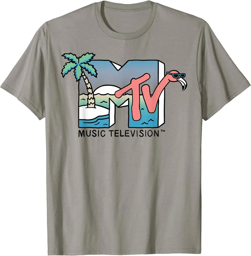 MTV Plażowy Flaming Scena Retro Logo Graficzny T-shirt