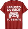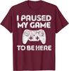 I Paused My Game To Be Here Gamer TShirt Funny Video Game Controller Graphic Tee for Men