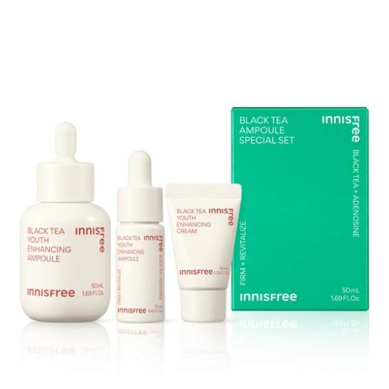 A premium anti-aging skincare set designed to revive tired skin and improve overall skin condition. Powered by Reset Concentrate™ derived from Jeju black tea, this set helps restore skin vitality, enhance elasticity, and strengthen the moisture barrier. The combination of a full-size ampoule with travel-size ampoule and cream makes it ideal for daily use and on-the-go care.