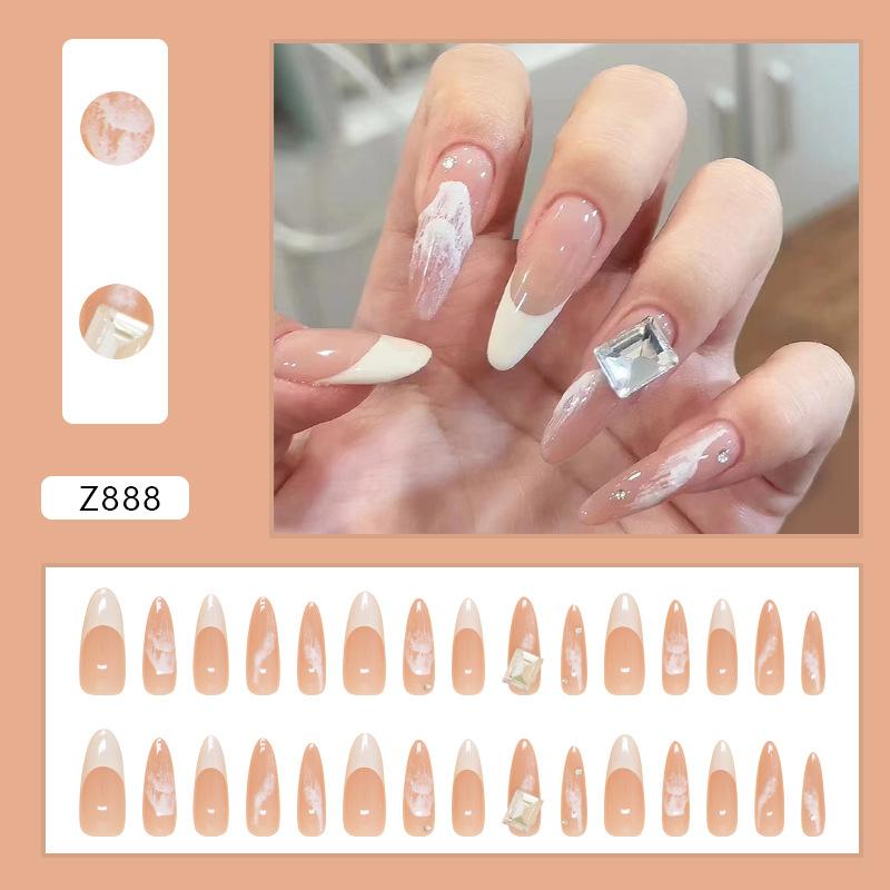 Nail Patch French Fake Nail Removable Nail Light Pink Wave Wearing Nail Art Nail Patch Long Nail Diamond 30 pieces