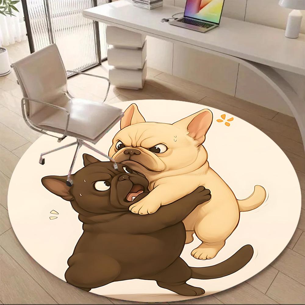1PC Bulldog Playful Office Round Area Rug, Mat Suitable ForOffice, Under Office Chairs Bedroom Living Room Home Decor, Room Deco