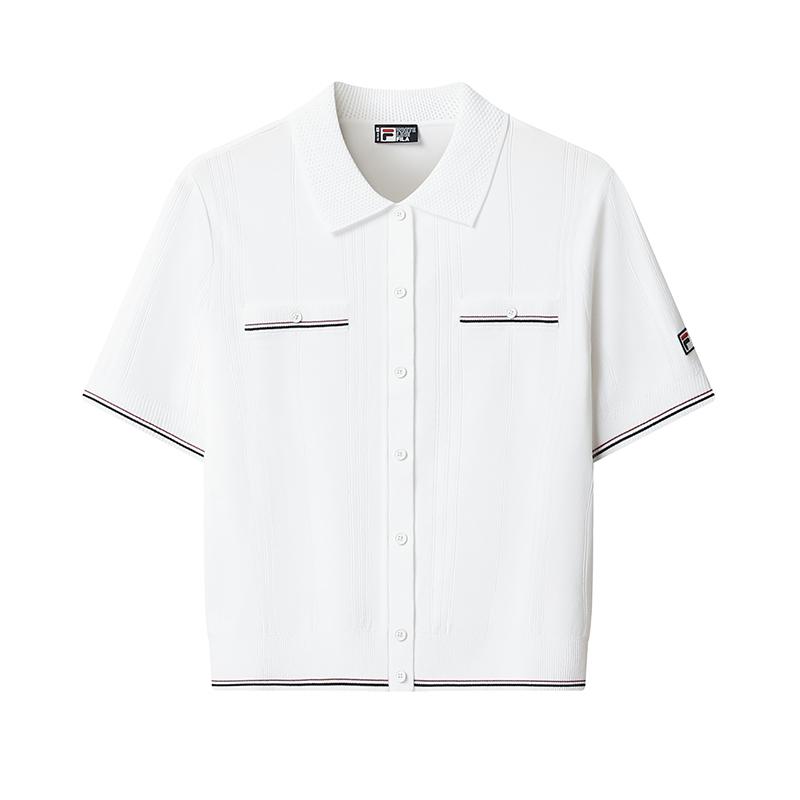 FILA Heritage Fashion Simple Classic Retro Elegant Casual Versatile Comfortable Knitted Short Sleeve Sweater Women tops Cloud-White F11W628412FWT