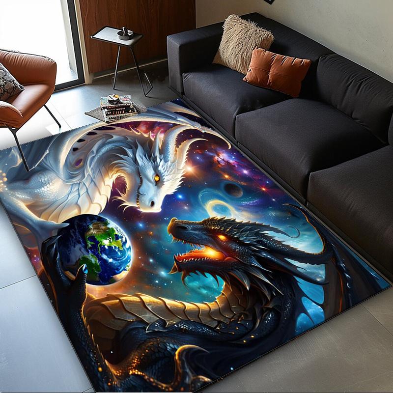 Epic Dragon Galaxy Rug for Modern Living Room Decor | Unique Cosmic Fantasy Art Carpet with Earth Motif Skid resistant carpet