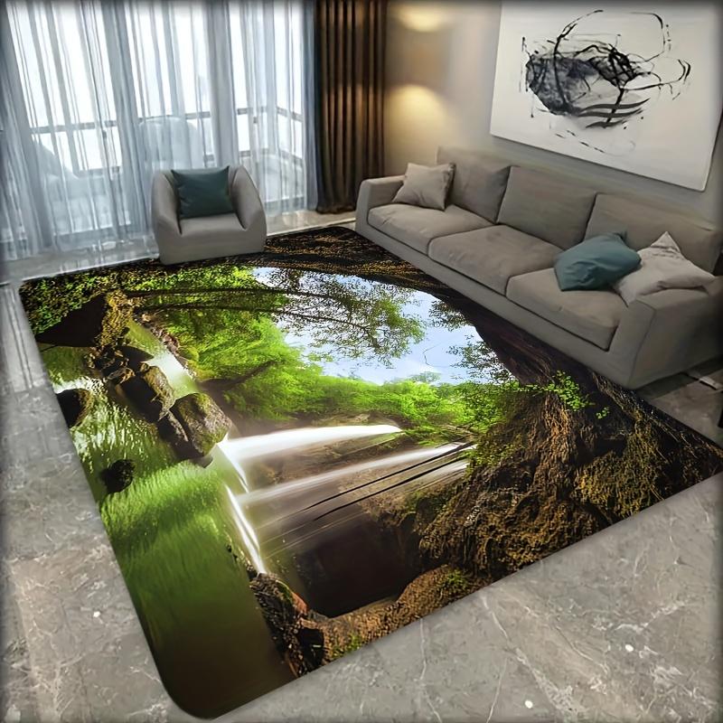Forest Waterfall Rug for Nature Lovers - Serene Landscape Carpet, Eco-Friendly Home Decor Anti slip carpet can be machine washed